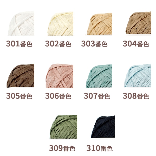 エコアンダリヤで人気なナチュラルな色に合わせた色展開で、バッグや帽子に使いやすい色合いです。